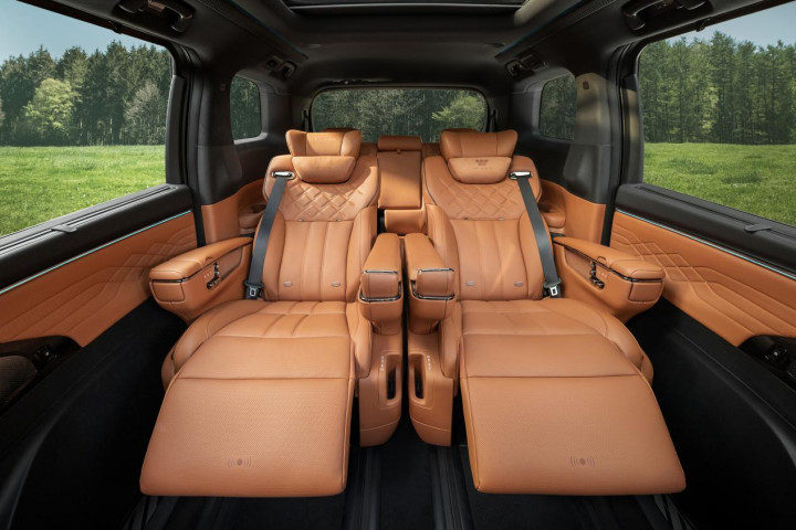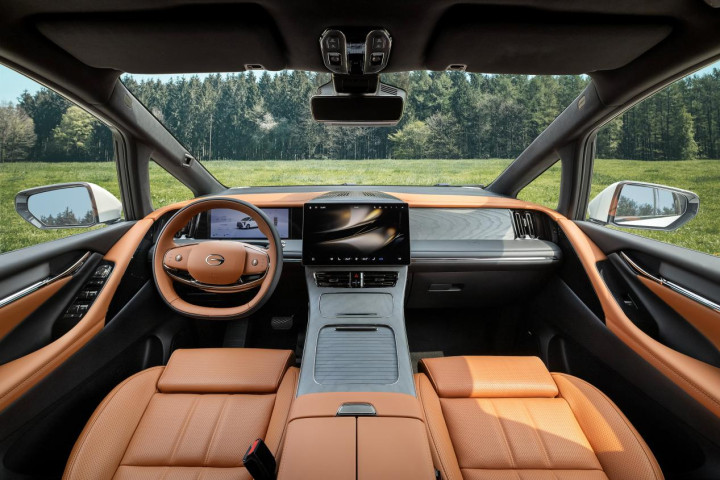 基于5251(5217)×1893×1823毫米的越级尺寸和3070毫米超长轴距,一二排纵向空间达1910毫米,比雷克萨斯LM多出130毫米的膝部空间。前中后三排座椅的乘坐空间都很宽裕,无需为空间而担心,并且第三排座椅配有电动滑轨系统,支持四种模式灵活切换:移动到靠后位置,前面四座非常宽裕,二排能获得1.2米超大腿部空间;第三排前移40厘米则可容纳7人并保留620L后备厢容积。另外第三排还可以翻折,增加后备厢装载容积等。
